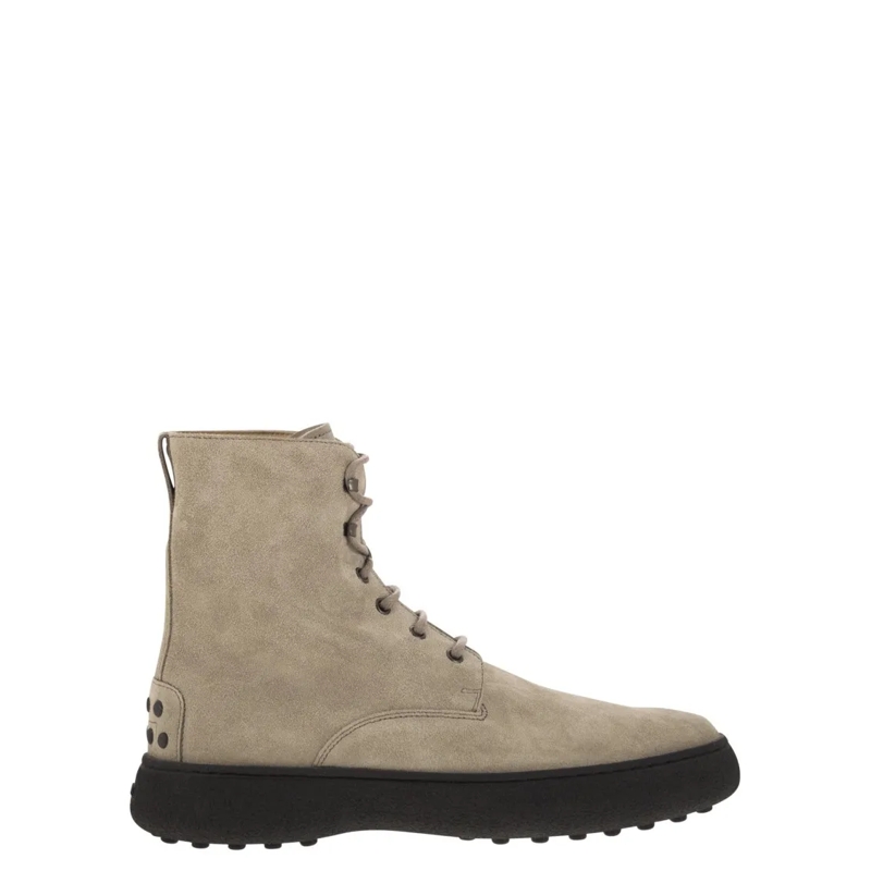 Tod's Ankle Suede Lace-Up Boot With Iconic Rubber Sole Neutrals Bottes